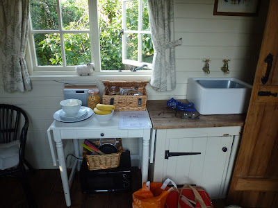 We waited until the school term started and then R looked at accommodation in the area. He gave me a choice of a hotel on a golf course or a shepherd's hut. Needless to say, I chose the latter. We were only going for 3 days - Saturday morning to Monday evening, and the hut looked picturesque and well equipped. There was a wood-burning stove and I pictured cosy, autumnal evenings snuggled up inside. As it turned out, that weekend saw the UK having a bit of a heatwave, so the stove didn't get so much as a look in.